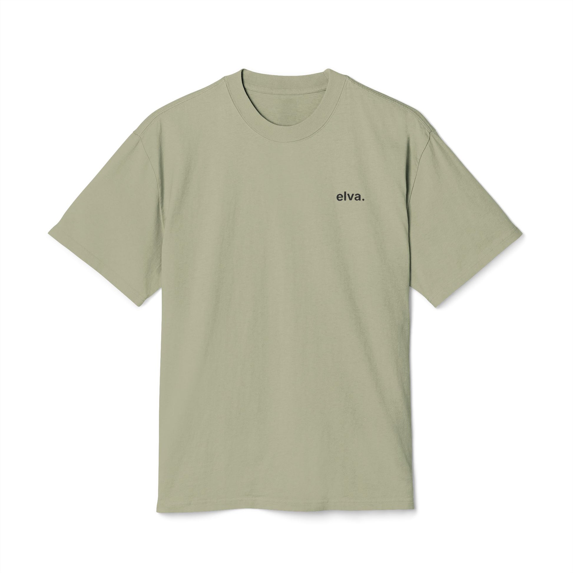 A small embroidered elva. logo sits on the chest — subtle, refined, and intentionally understated. Dropped shoulders and wide ribbing create a calm, contemporary shape, while reinforced stitching keeps the tee looking clean wear after wear.
